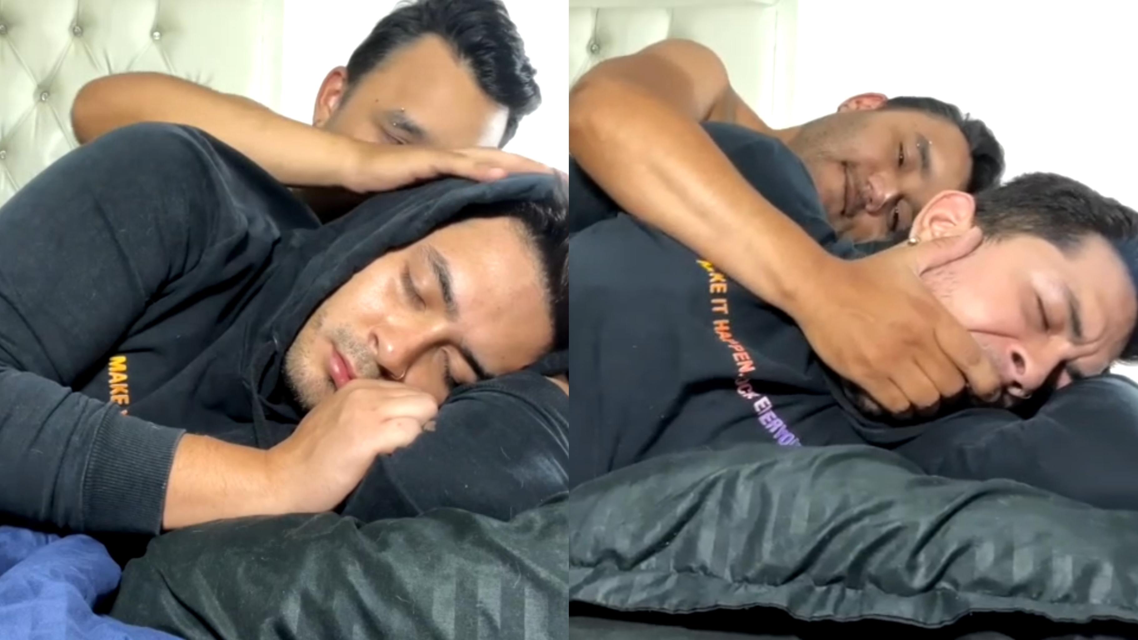 An American guy visits his friend's house to watch a movie with him while he is sleeping on his lap, where he tricks him with a hot blowjob when he slowly inserts his big cock into his slutty mouth, and then he grabs his ass and then, after a solid sex, both of them have hardcore sex.