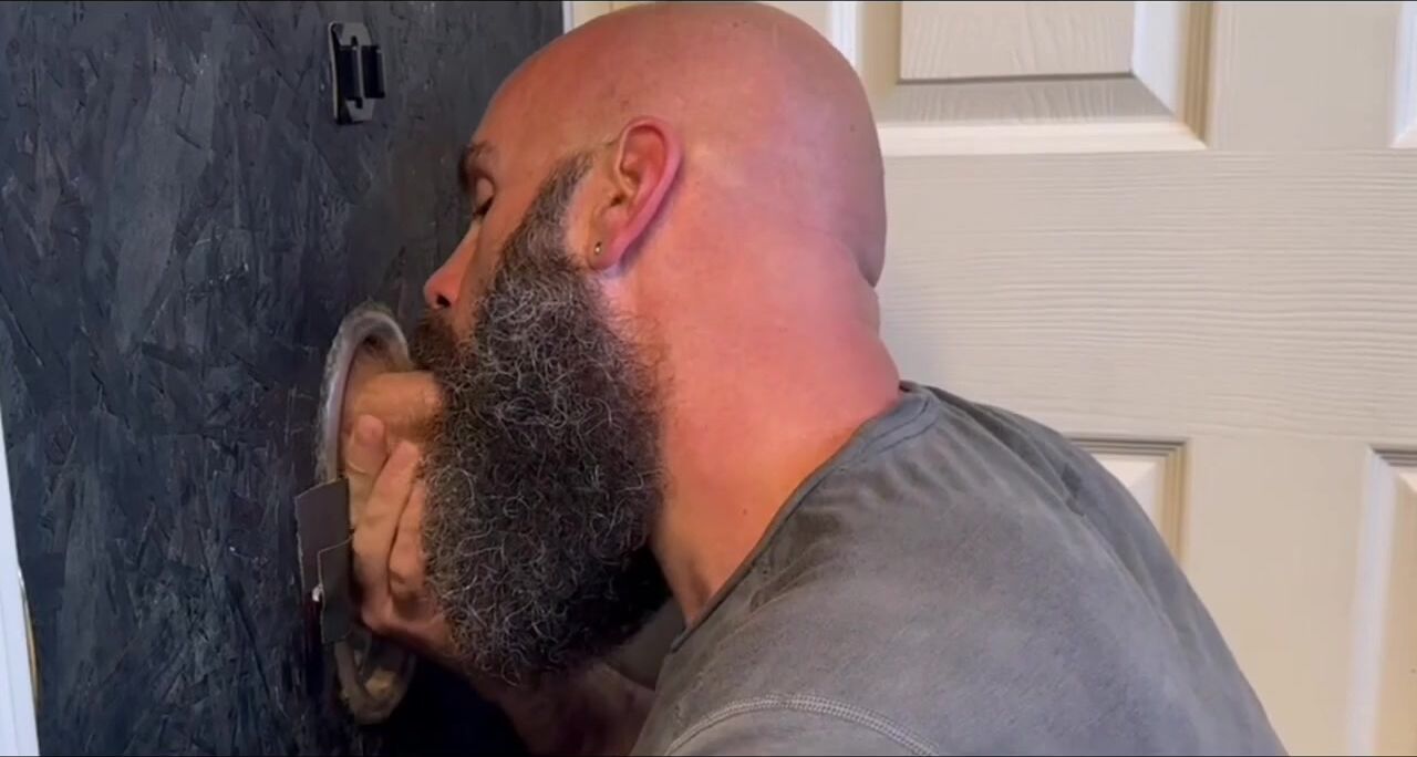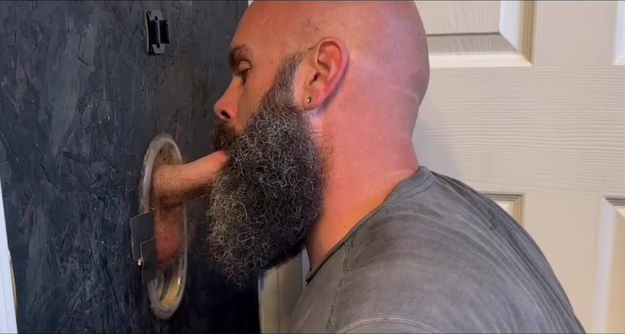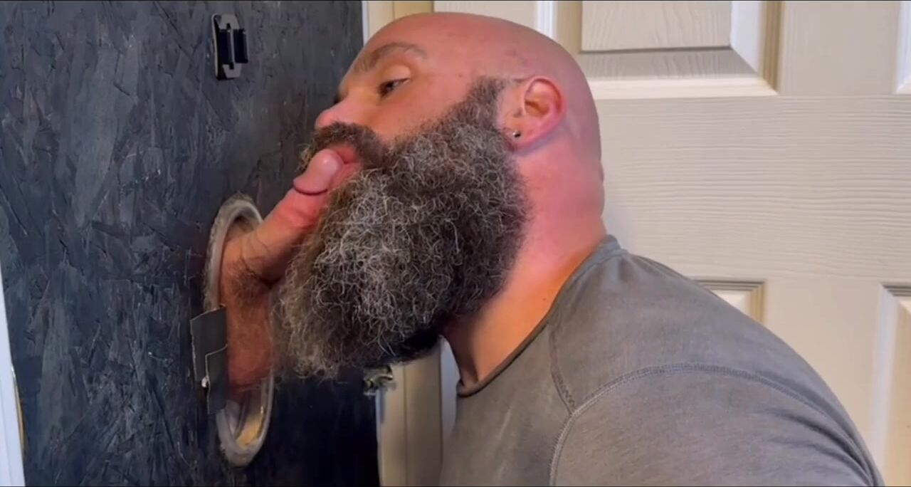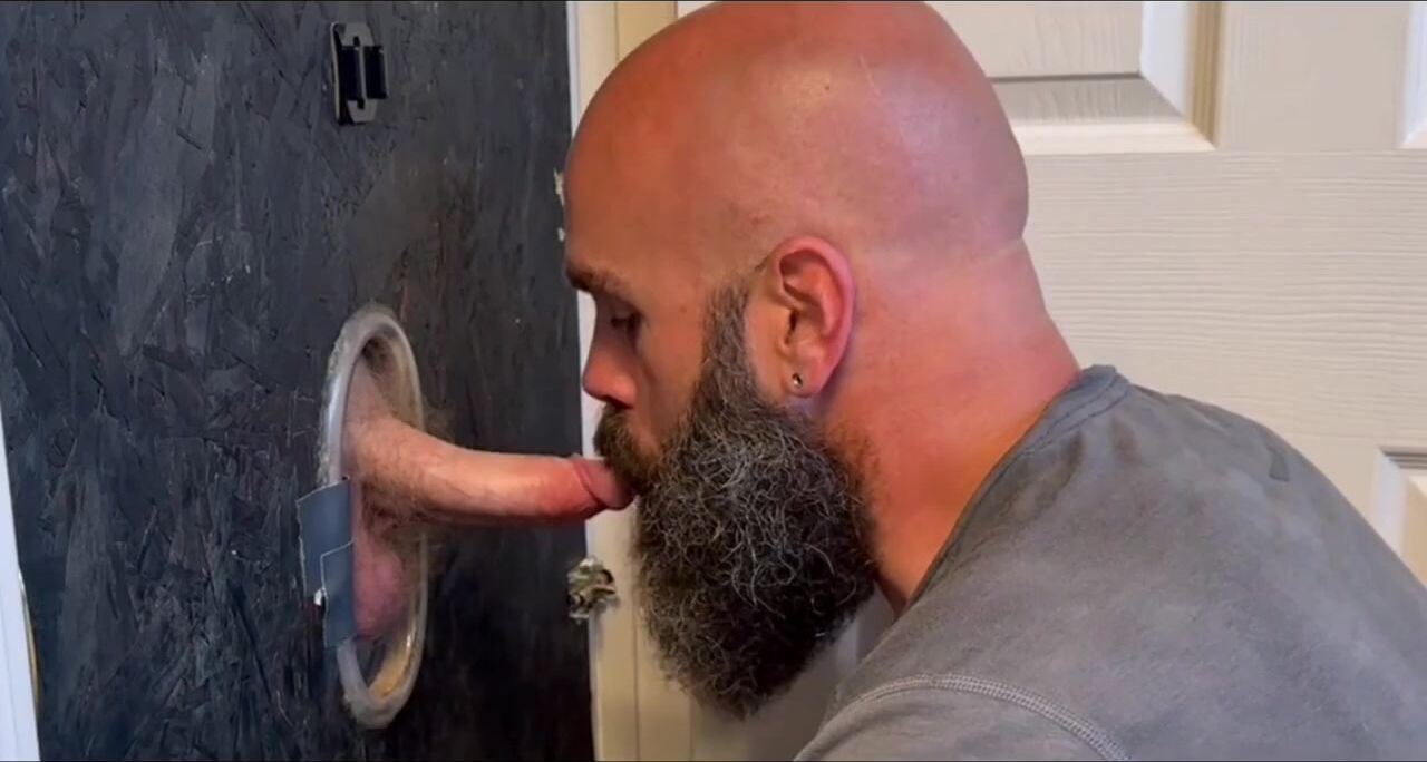 A lonely bearded man, James, misses his gay friend Aswin, who leaves him for his job, and so he visits the gay pub, then explores some fun gay sex games while one wooden hole exposes the white dick, and he loves to play with his dick and then blows with his slutty mouth after he sucks very hard the erected cums out into his mouth.