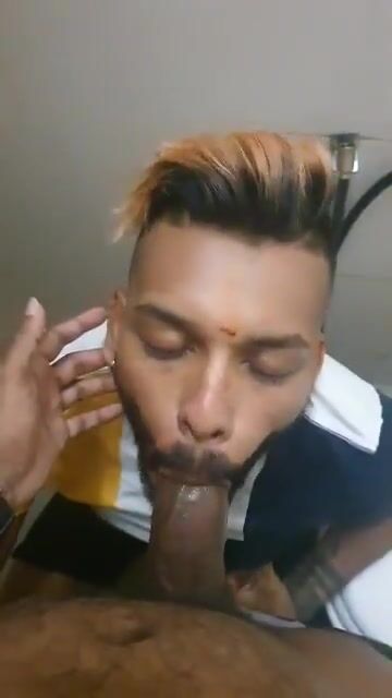 This guy with orange hairs on top is a famous tiktoker with about half a million followers. This gay boy is busy sucking on friend’s thick lund in hotel bathroom. The gay bottom has been a cum dump for many of the friends, because he pays for hotel room and the food. Watch this tiktok star on his knees and making that big desi lund all wet with his spit. He kept on sucking that cock till he felt the sour cum waters flowing down his throat.