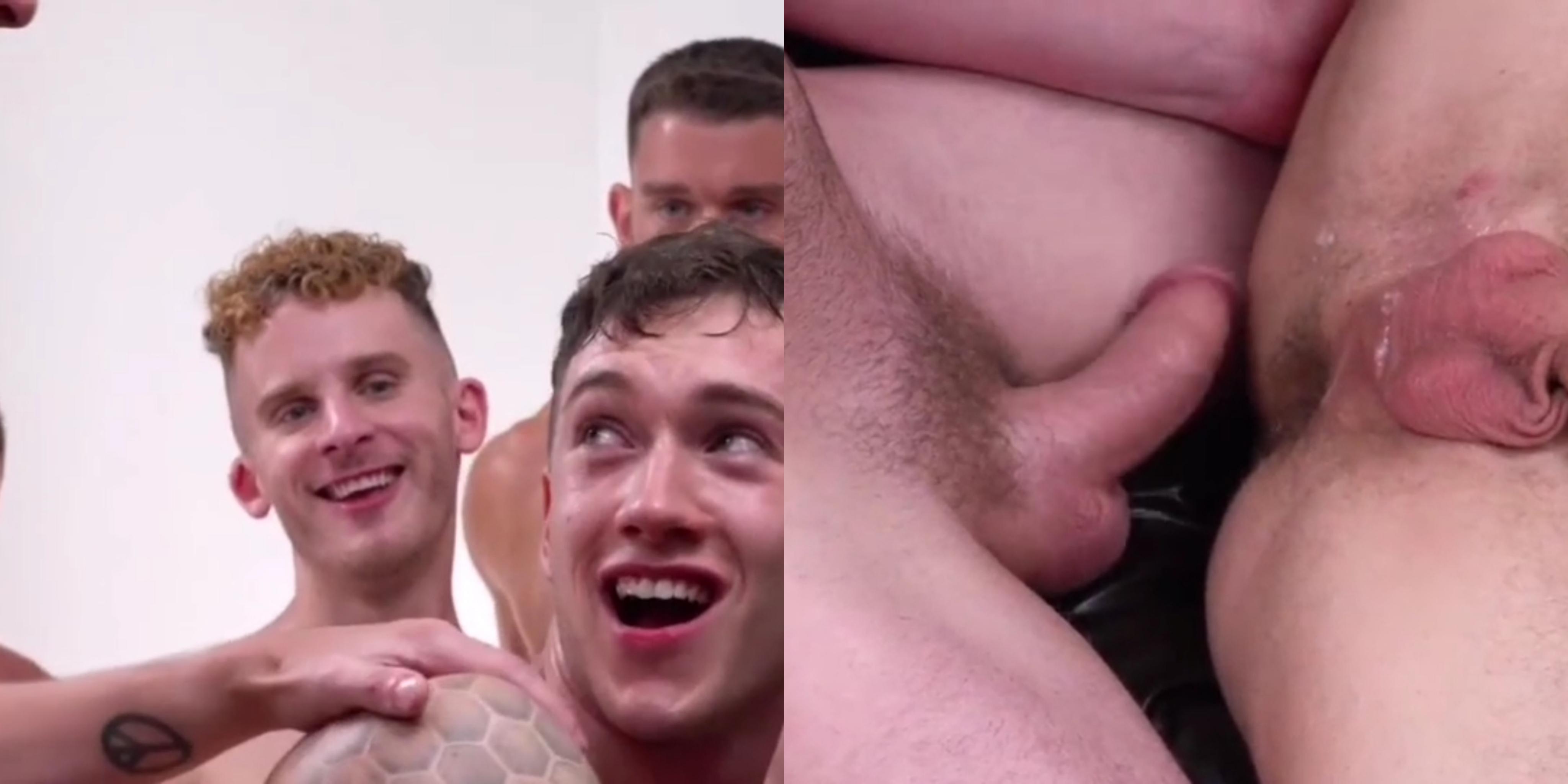 At a college gym, a handsome man visits his friend's home while a group of men shows their nude bodies, while all of them show their big adulthood cock, and he is ready to suck their cocks with slut mouth after a hot blowjob he bows his dick and sucks their dick, then engages in hot gangbang sex then cums into his big mouth.
