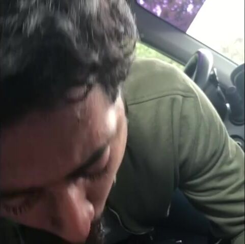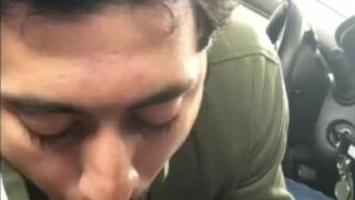 Latino gay man sucking cock in the car