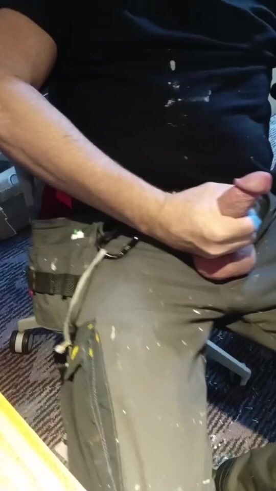 After watching gay porn, a British English man with bones who works as a painter at a construction site masturbates by pulling out his large white cock and jarring his dick with his palm hand, then hot masturbating while drilling his dick with his hand, and finally cumsing out in the workplace.