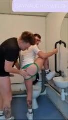 Public toilet gay sex of hot flip-fucking guys
