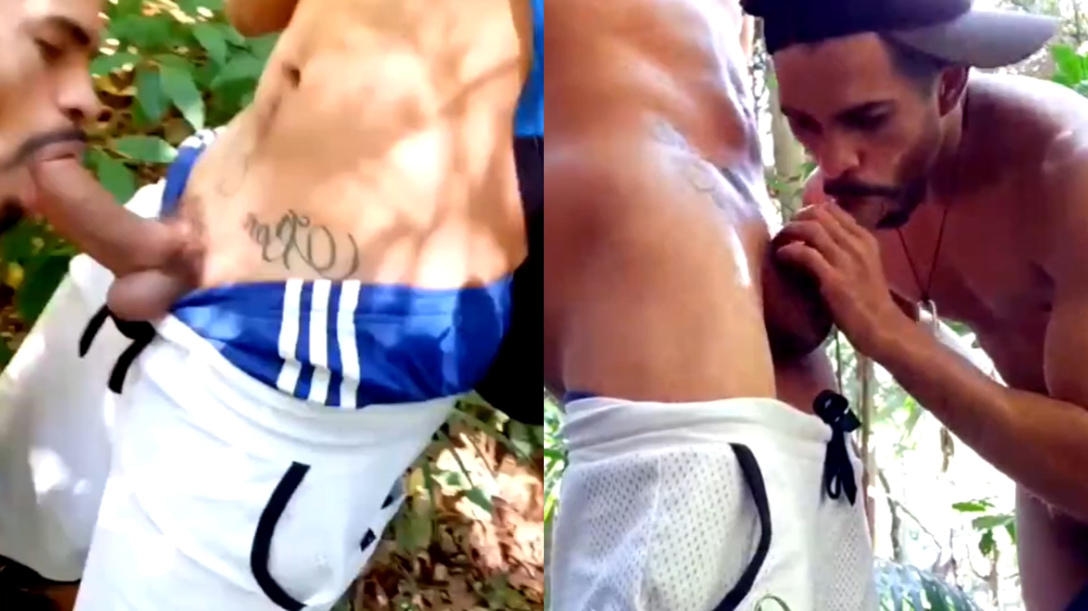Rough gay friends enjoy outdoor doggy sex