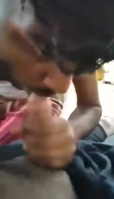 Gay friends enjoy blowjob in running car