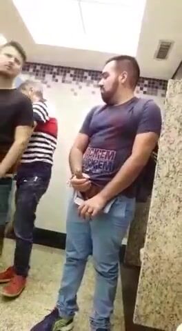 Toilet gay threesome of strangers fucking publicly